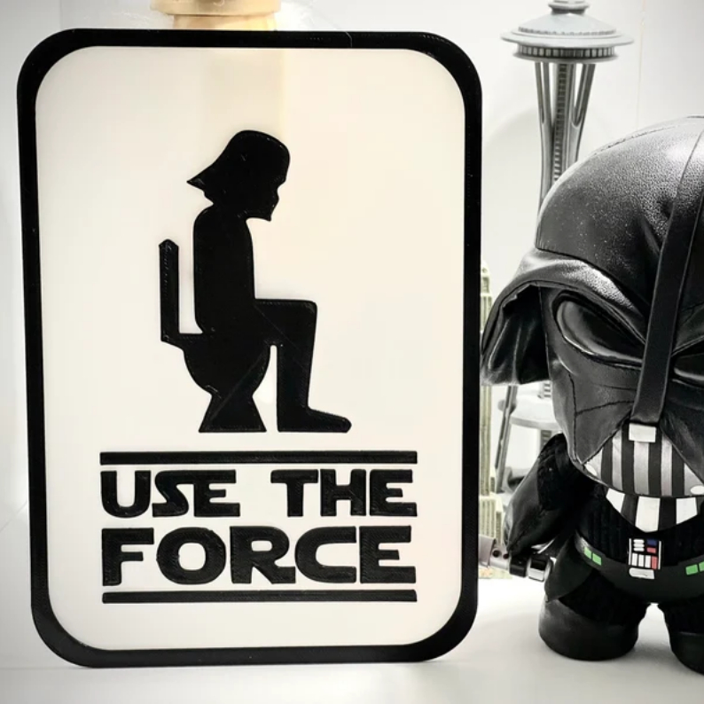 Keep your bathroom fun and geeky by hanging up this “Use The Force” sign.And will make a stellar addition for the home of any Star Wars fan with a sense of humor.